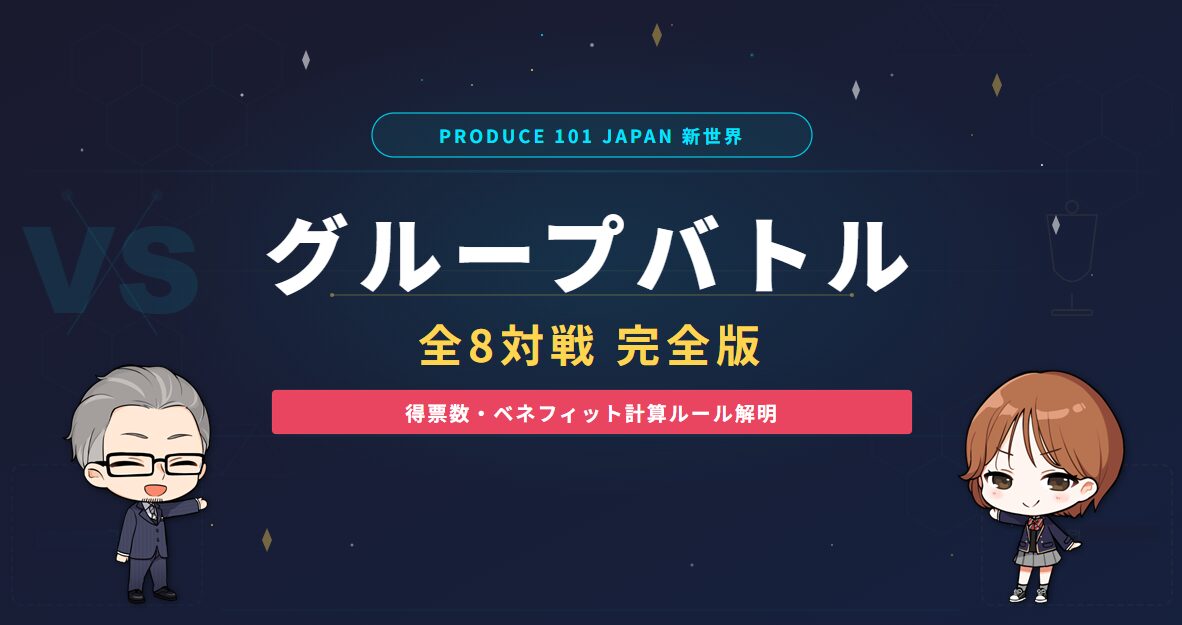 「PRODUCE 101 JAPAN 新世界」第3話・第4話で行われたグループバトル全8対戦(16チーム)の結果・個別得票数・FREEパート・チームベネフィットを完全網羅。